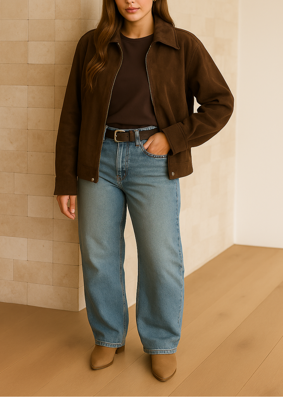 Douce, polyvalente et facile à assortir, cette veste est conçue pour vous accompagner pendant les mois les plus frais avec légèreté et style. Le tissu effet suédé offre une texture chaude et enveloppante, sans renoncer à la praticité.